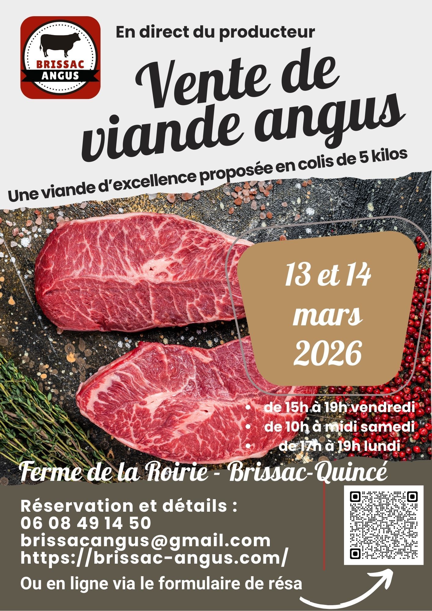 Vous pouvez également commander des abats (10€/kilo), et selon les disponibilités, une côte de boeuf à l'unité (28€/kilo).